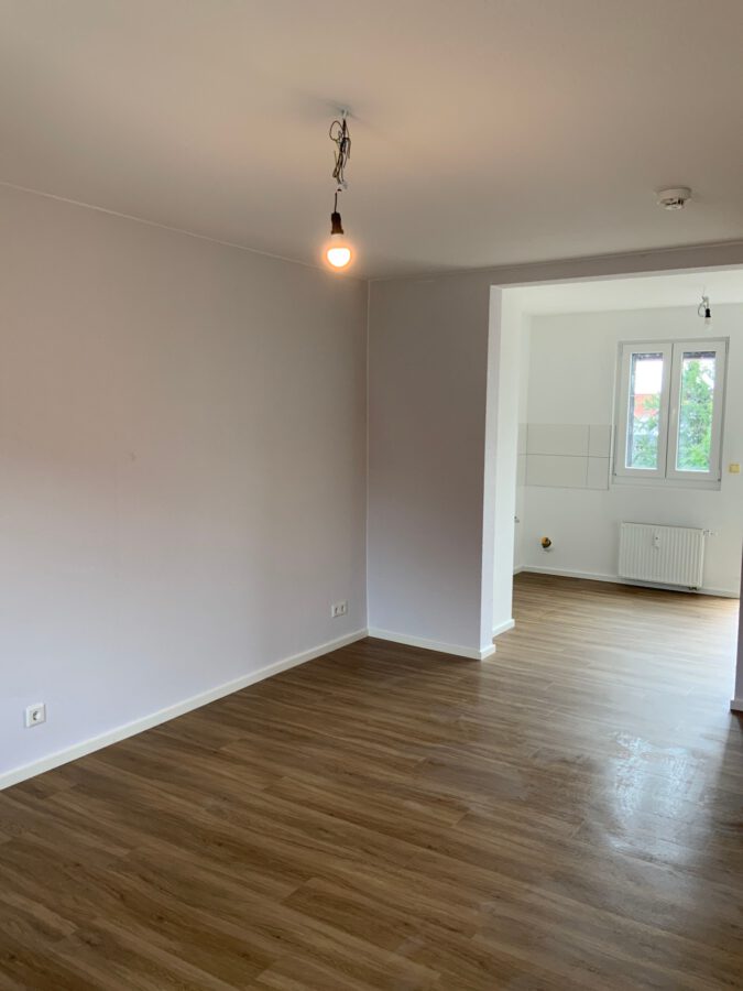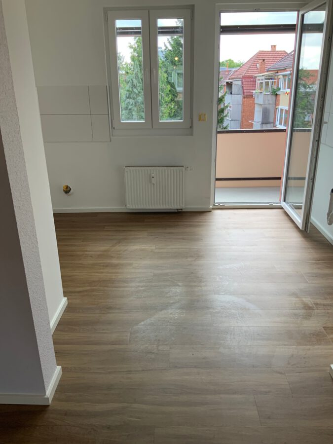 Die Wohnung ist mit Parkettboden im Wohn- und Schlafzimmer sowie Fliesenboden in Flur, Küche und im Badezimmer ausgestattet.