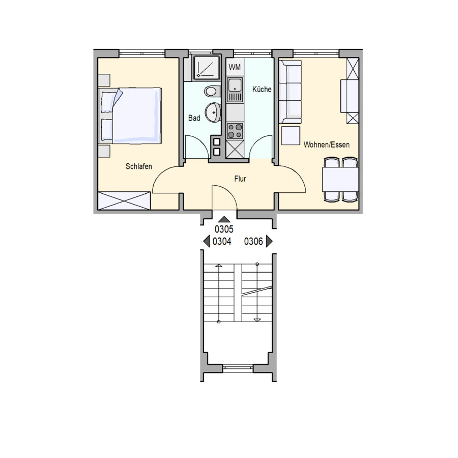 Zur Wohnung gehört neben 2 Kellerräumen auch ein mieteigener Abstellraum im Dachgeschoss, für den eine monatliche Miete in Höhe von 15€ anfällt und in der Gesamtmiete enthalten ist.