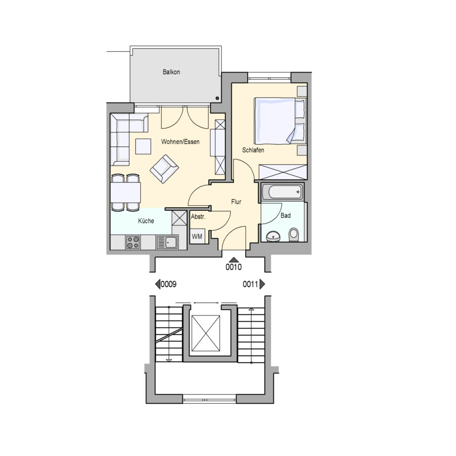 Die Reinigung des Treppenhauses und der Außenanlage sowie dem Winterdienst erfolgt durch ein Dienstleistungsunternehmen.