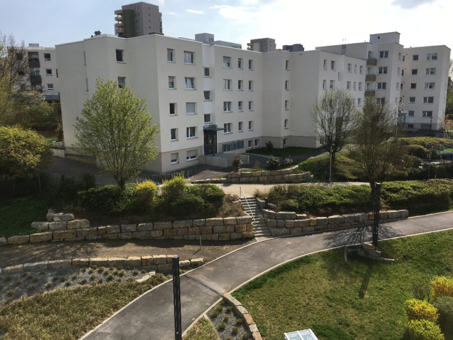 Die Wohnung liegt in Stuttgart Neugereut im Wohngebiet und bietet dadurch eine sehr ruhige und grüne Lage. Die nächsten Einkaufsmöglichkeiten befinden sich in unmittelbarer Nähe. Alle Dinge des täglichen Bedarfs sind in wenigen Gehminuten erreichbar. Zudem gibt es gute Anbindungen an den öffentlichen Nahverkehr.