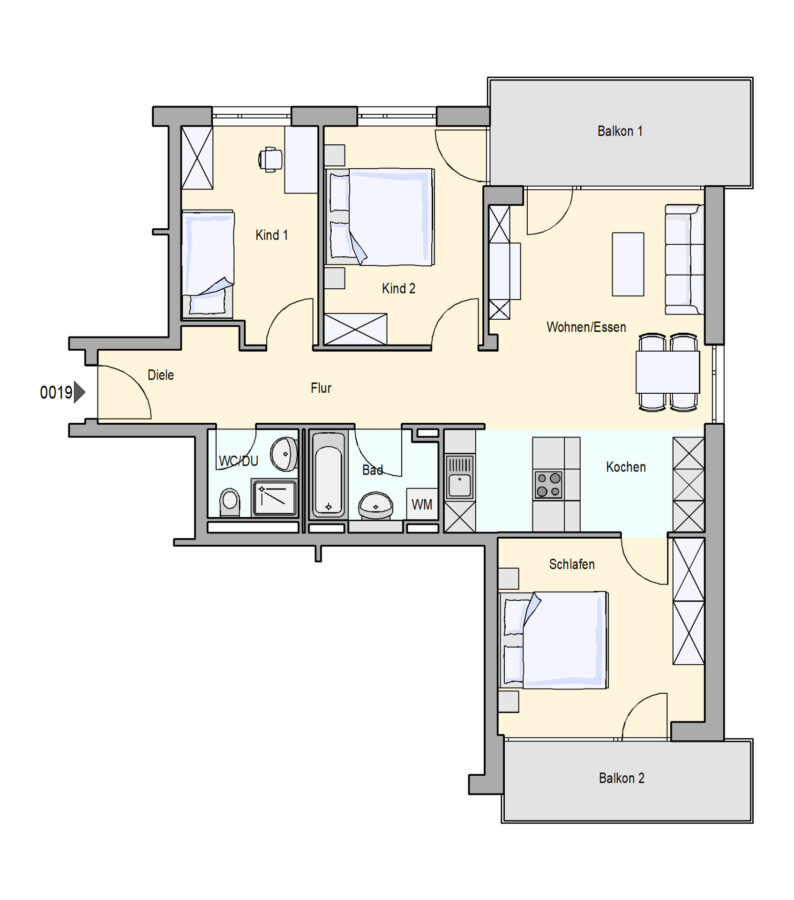 Die Wohnung enthält zusätzlich einen Kellerraum.